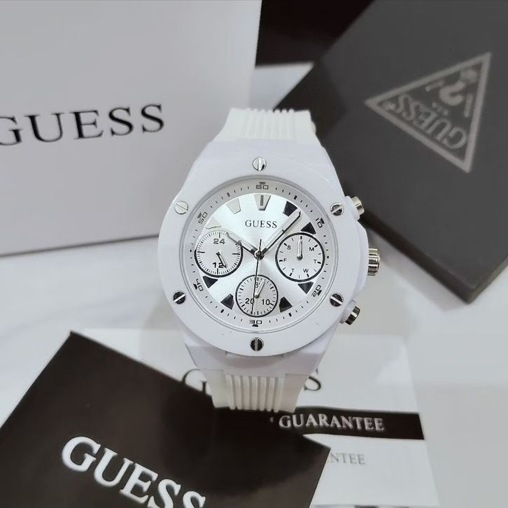 JAM TANGAN WANITA GUESS ATHENA GW0255L1 FULL WHITE RUBBER GARANSI 1 TAHUN FREE BOX ORIGINAL