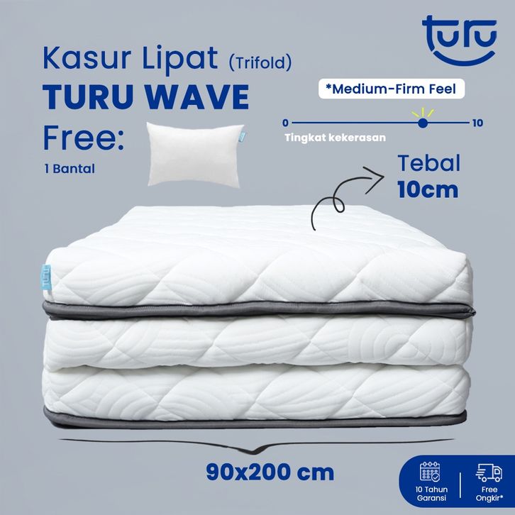 Kasur Lipat Trifold Turu 10x90x200 Premium Wave Rebounded Tebal Original Free Bantal
