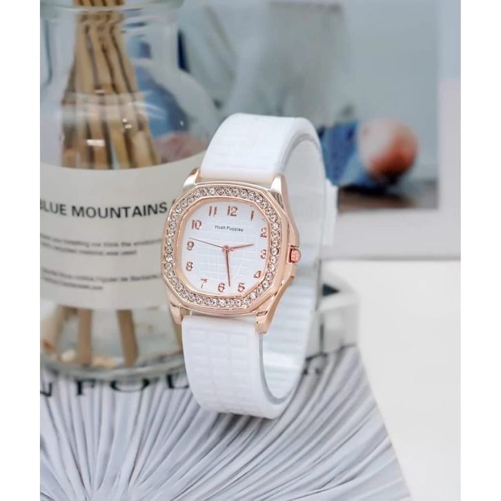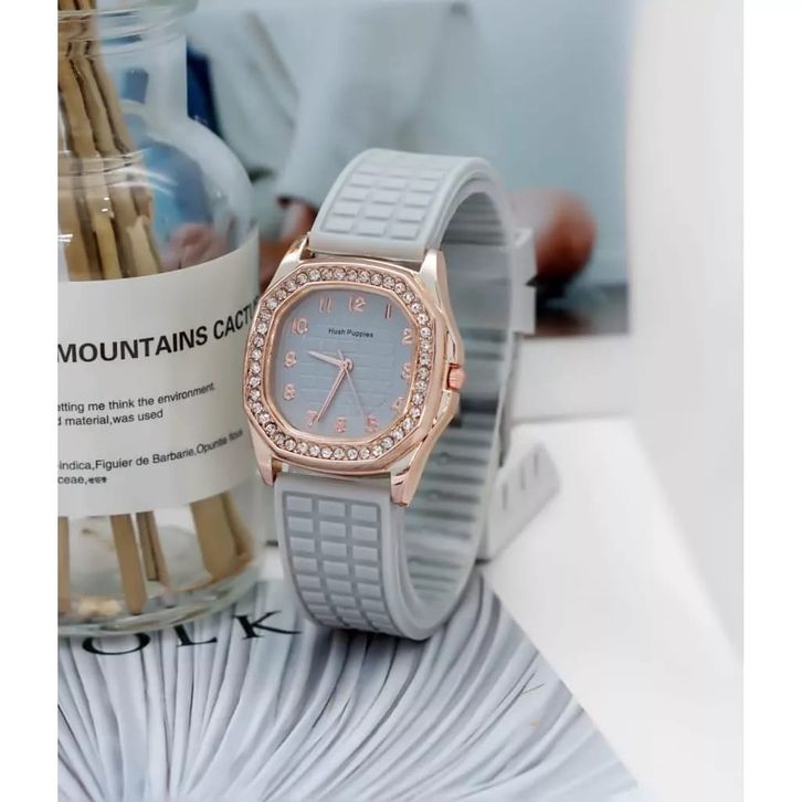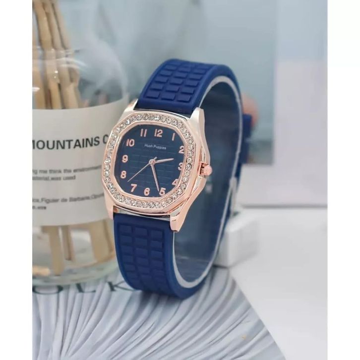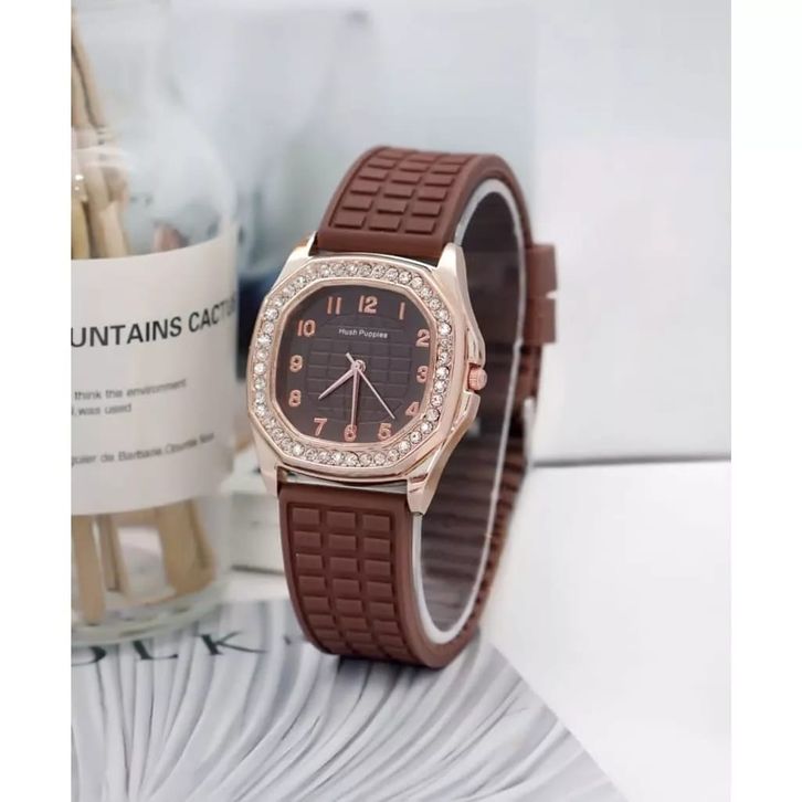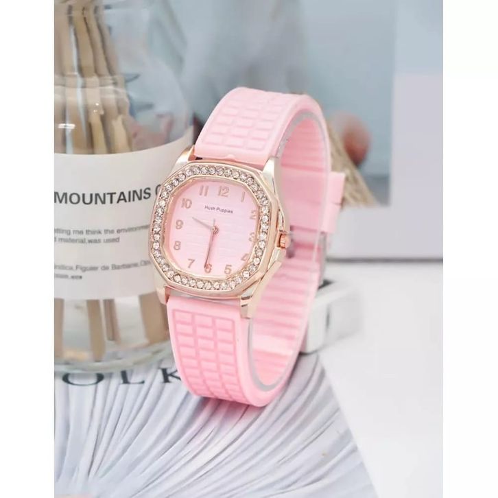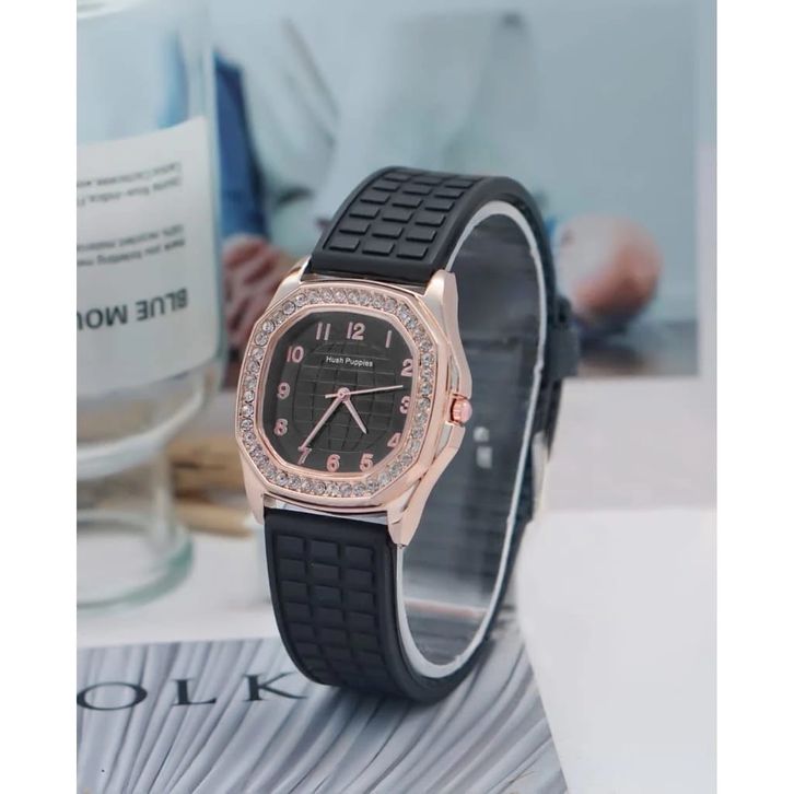 Jam Tangan Wanita Hush Puppies Rubber Casual Quart Ring Diamond Diameter 32mm Free Box