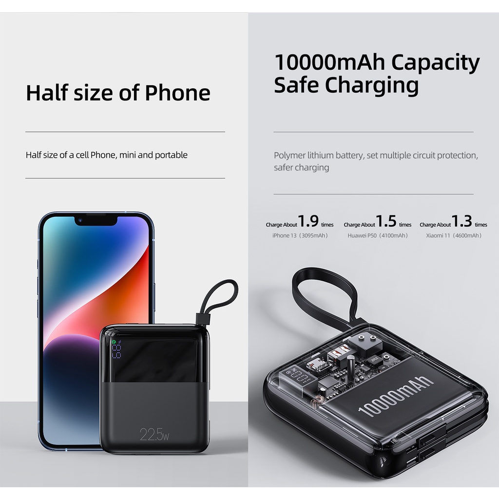 USAMS OFFICIAL ORIGINAL PB69 QC/ PD LED POWERBANK FAST CHARGING TYPE C / MICRO USB 22.5W 10000 MAH POWER BANK