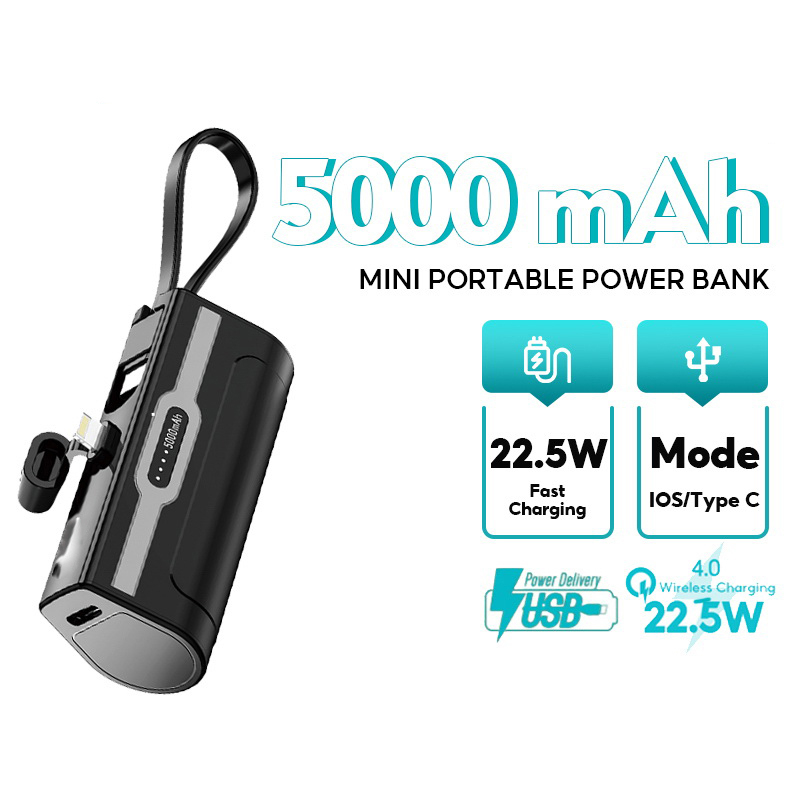 MIPOW MINI POWERBANK 5000MAH LIGHTNING(IPHONE)/TYPE C FAST CHARGE POWER BANK PORTABLE CHARGER