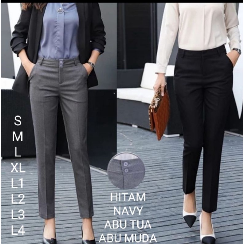 CELANA DASAR FORMAL KERJA KANTOR WANITA RESLETING/KARET UKURAN KECIL SAMPAI JUMBO S - M - L - XL - XXL