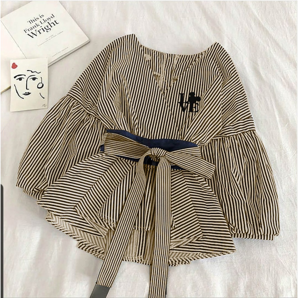 [HNFK] BLOUSE KOREA / BLOUSE WANITA TERBARU / ATASAN KOREA TERMURAH / BLOUSE MOTIF SALUR