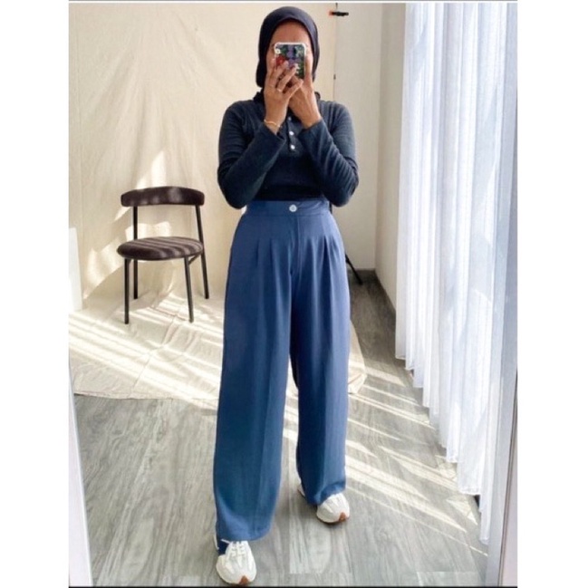 CELANA KULOT CRINKLE AIRFLOW HIGHWAIST WANITA LOOSE CULLOTE PANTS KANCING DEPAN HIDUP
