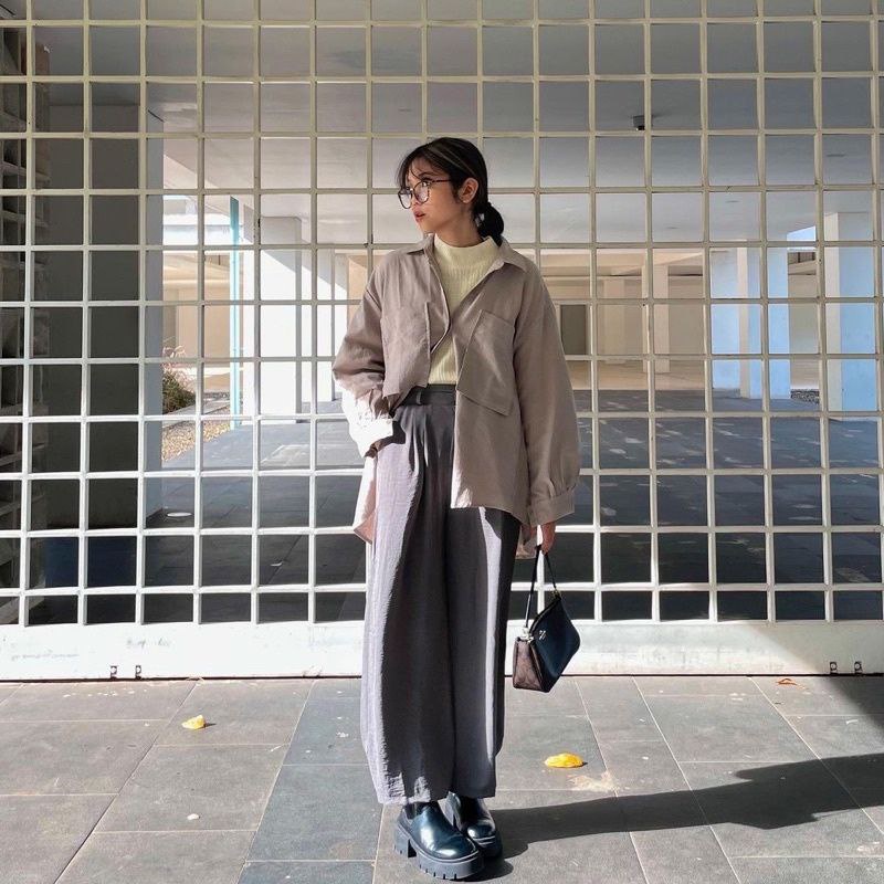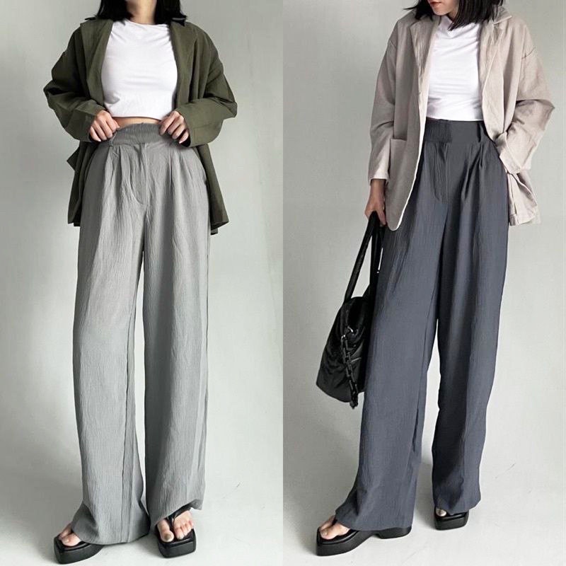 CELANA KULOT CRINKLE AIRFLOW HIGHWAIST WANITA LOOSE CULLOTE PANT POLOS