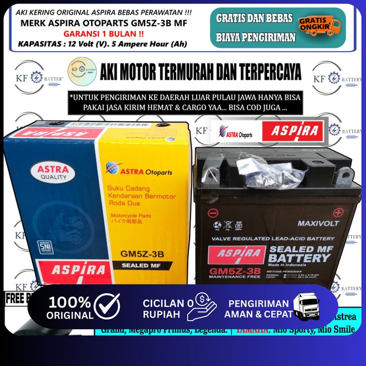 GROSIR/BARU+ AKI MOTOR MIO SPORTY, MIO SMILE, VEGA ZR, FIZ R GM5Z-3B ASPIRA ASTRA MF