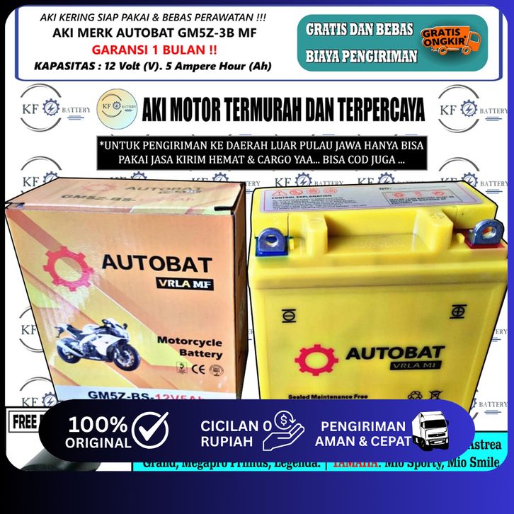 GROSIR/BARU+ AKI MOTOR MIO SPORTY, MIO SMILE, VEGA ZR, FIZ R, MX OLD GM5Z-3B AUTOBAT MF