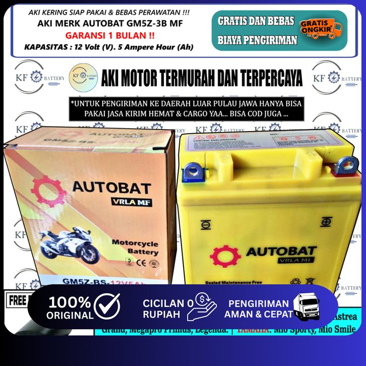 GROSIR/BARU+ AKI MOTOR SUPRA FIT, ASTREA GRAND, MEGAPRO PRIMUS, FIT X GM5Z-3B AUTOBAT MF