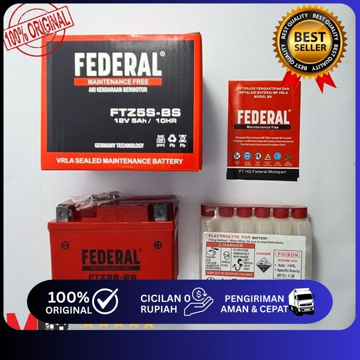 GROSIR/BARU+ AKI KERING AKI MOTOR GTZ 5S GTZ-5S 12V 5AH / 10HR FEDERAL