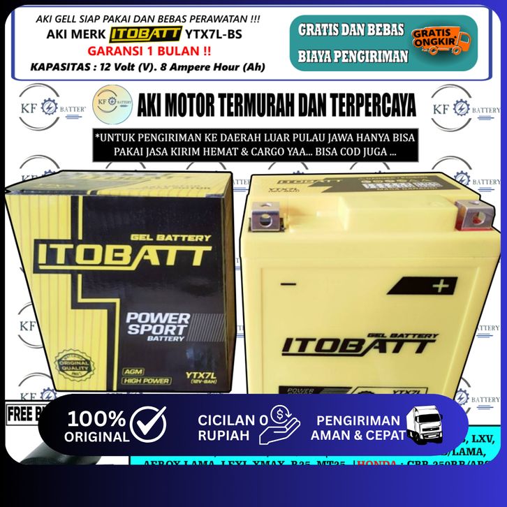 GROSIR/BARU+ AKI MOTOR VESPA SPRINT, LX 125, NMAX, AEROX 155 GTZ7V ITOBATT GELL