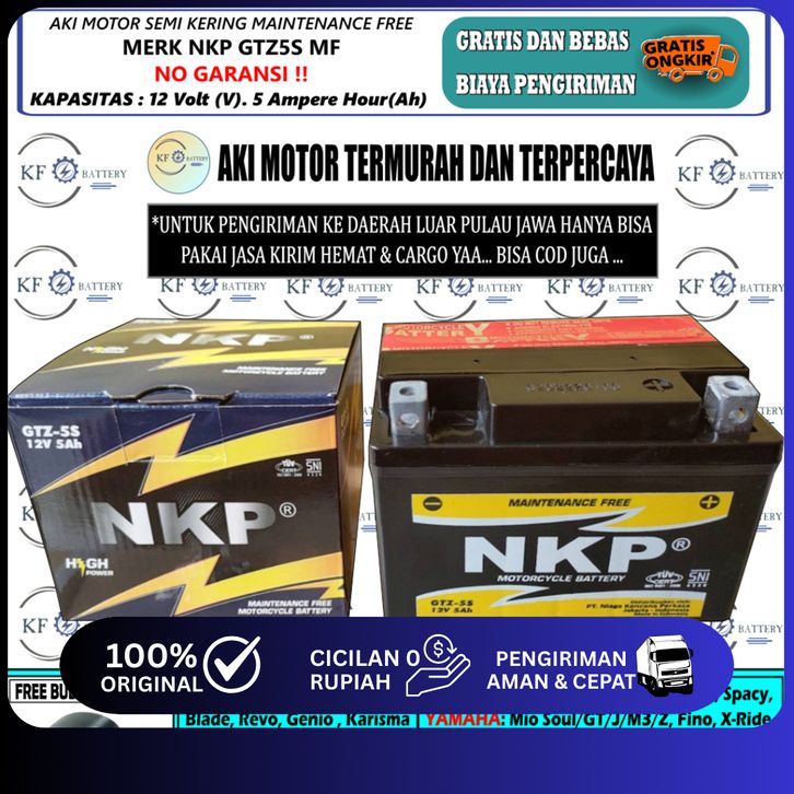GROSIR/BARU+ AKI MOTOR BEAT, VARIO 110, SUPRA X 125, REVO, BLADE, SPACY GTZ5S NKP MF 5 AH