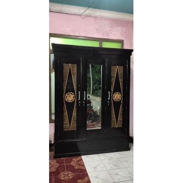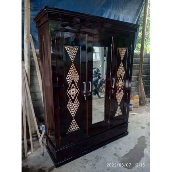 LEMARI KAYU 3 PINTU TERMURAH ALMARI PAKAIAN KAYU MAHONI