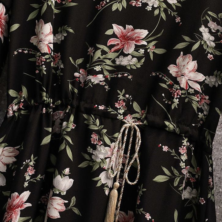 Midi Dress Wanita Pantai Santai Motif Bunga Gaun Pesta Korea Jumbo gaun bunga M PROMO TERMURAH