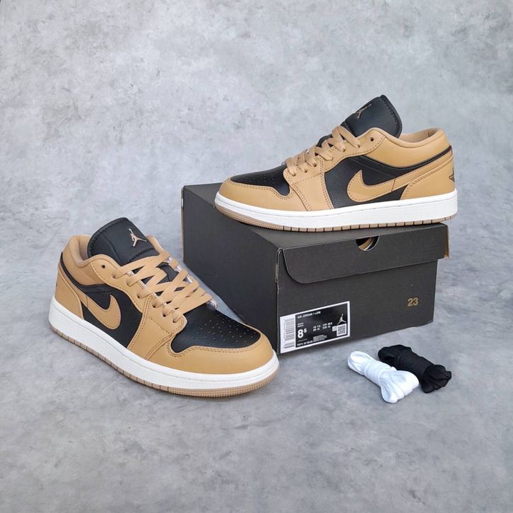 SEPATU NIKE AIR JORDAN 1 LOW DESERT BLACK ORIGINAL BNIB FULL TAG BARCODE BAHAN LEATHER KULIT
