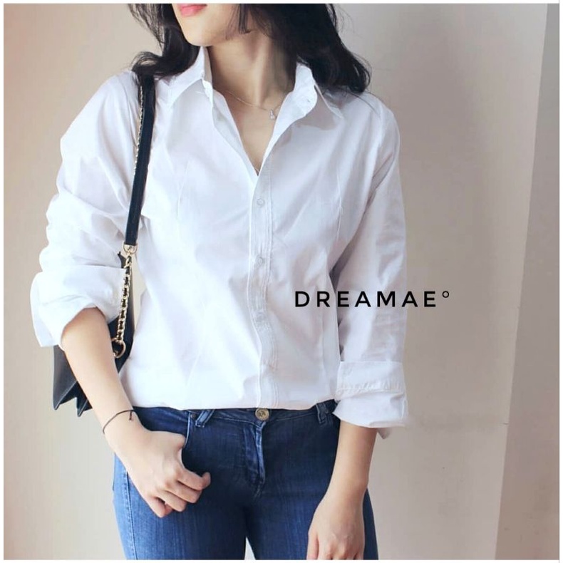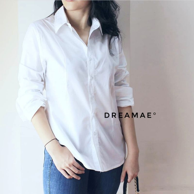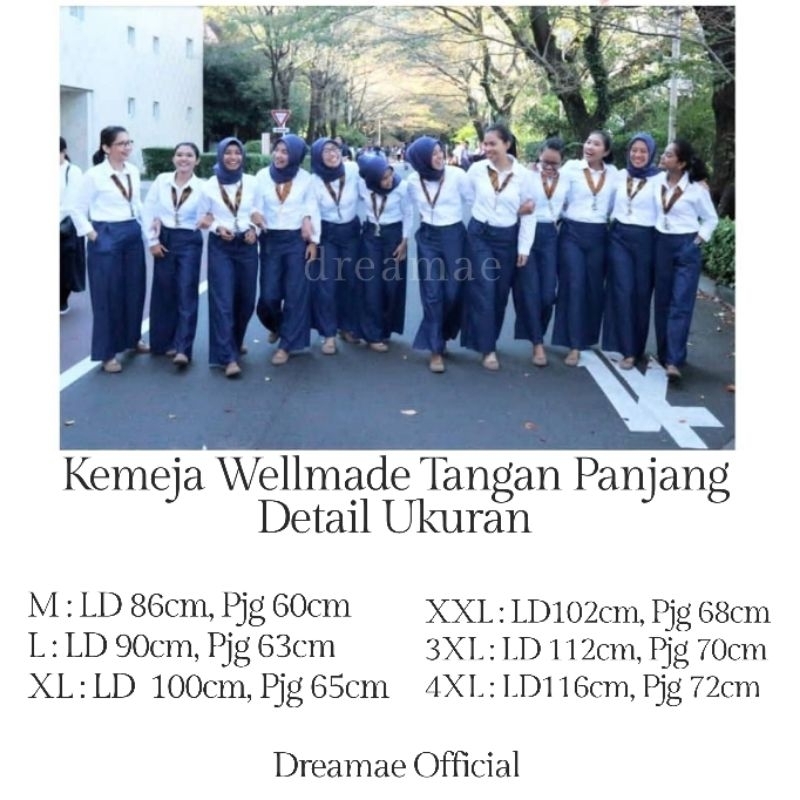 PROMO WELLMADE | KEMEJA KERJA 17AN OSPEK UJIAN WANITA M-4XL KATUN LENGAN PANJANG KANCING POLOS FORMAL CEWEK PUTIH O