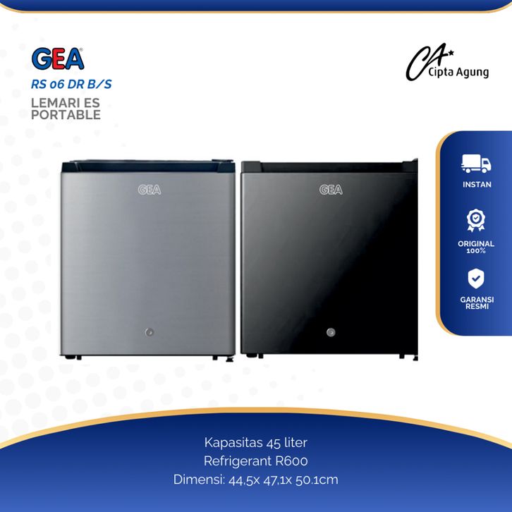 GEA KULKAS MINI PORTABLE 46 LITER GMB-50 GMB 50 GMB50 LEMARI ES KECIL ANAK KOS MINIBAR BLACK INOX MATTE GREY