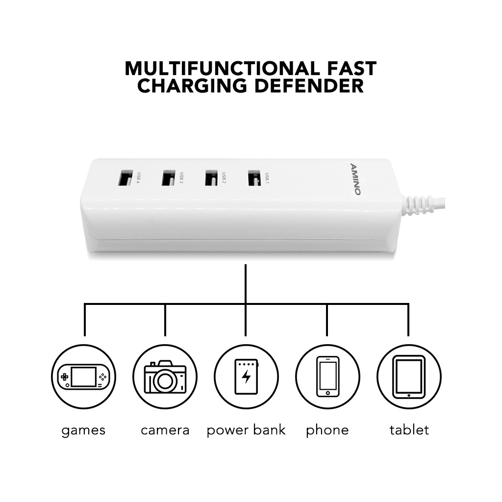 CHARGER USB MULTI PORT AMINO 4 USB FAST CHARGER LED FUNCTION 5V 2A 20W