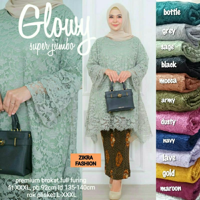 KEBAYA GLOWY SUPER JUMBO LD 140 BROKAT TUNIK BY ZIKRA FASHION | KEBAYA BROKAT SUPER JUMBO | ROK BATIK SUPER JUMBO