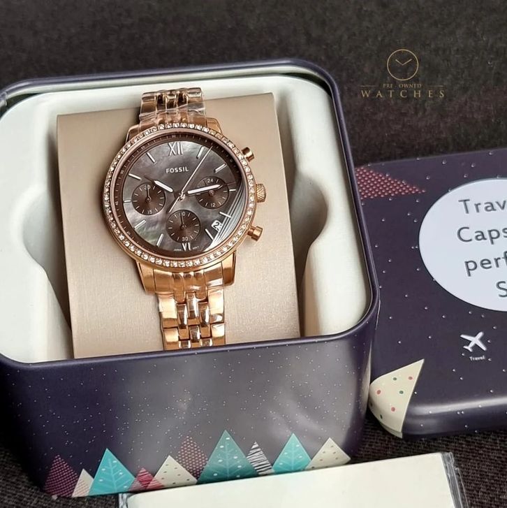 JAM TANGAN WANITA FOSSIL NEUTRA ES5218 ROSEGOLD BROWN STAINLESS STEEL FREE ONGKIR - FREE BOX ORIGINAL