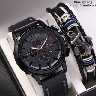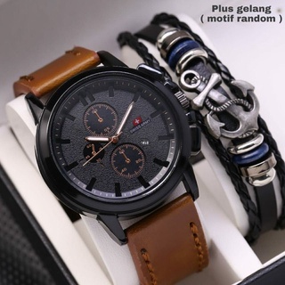 Promo Jam Tangan Pria Kulit Premium Armii280 Tanggal Aktif Free Gelang Random, Box, & Baterai
