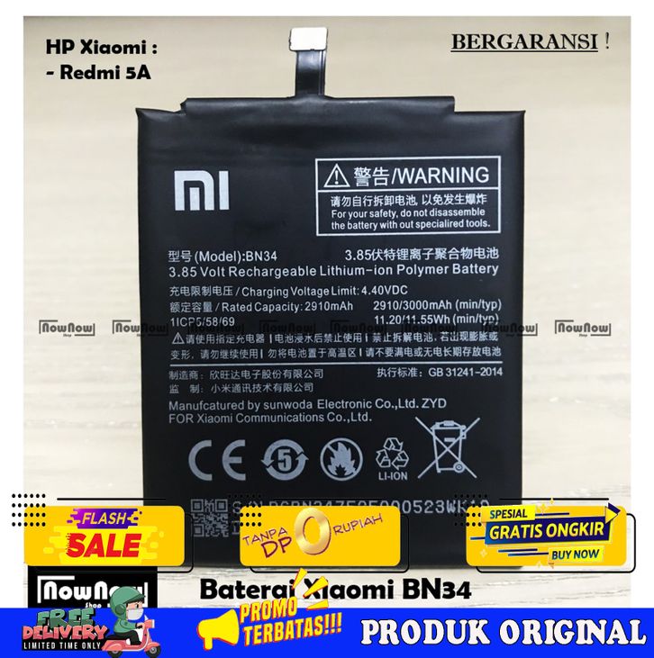 CICILAN/ BATERAI XIAOMI REDMI 5A BN34 ORIGINAL BATRE BATRAI BATTERY HP