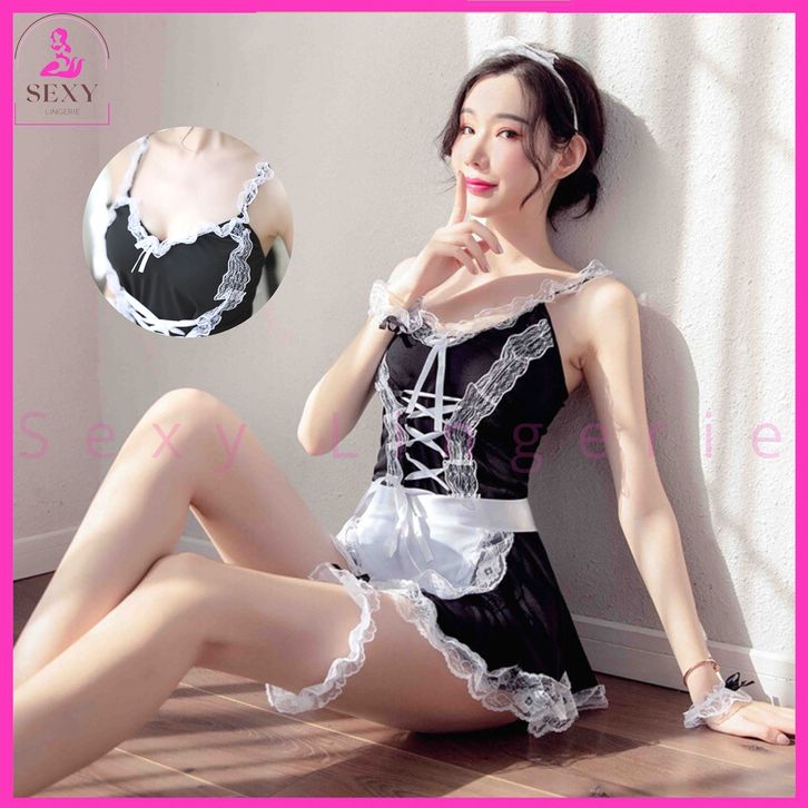 Lingerie Seksi Sexy Set Cosplay Custom Kostum + G String Model Charming Maid Waitress Babydoll SL-56 Terlaris