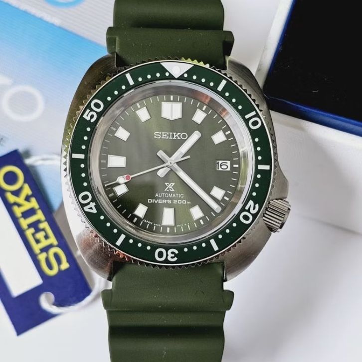 JAM TANGAN PRIA SEIKO TURTLE CAPTAIN WILLARD SILVER GREEN RUBBER GARANSI 1 TAHUN FREE BOX ORIGINAL