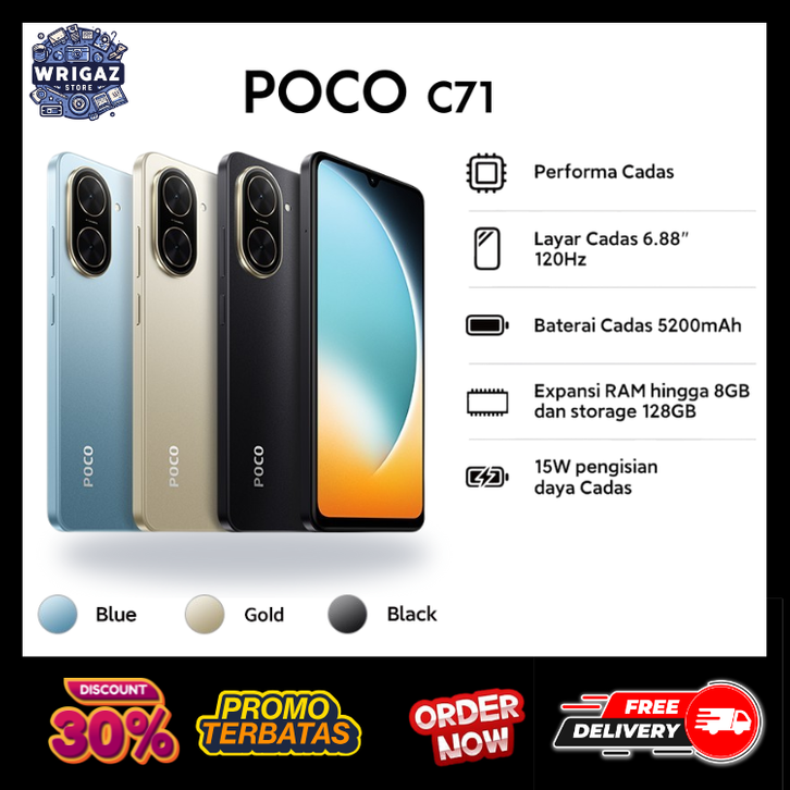 Hp Murah 1 Jutaan POCO C71 (4+4GB/128GB) Performa Cadas | Layar Cadas 6.88" 120Hz | Baterai Cadas 5200mAh | Expansi RAM