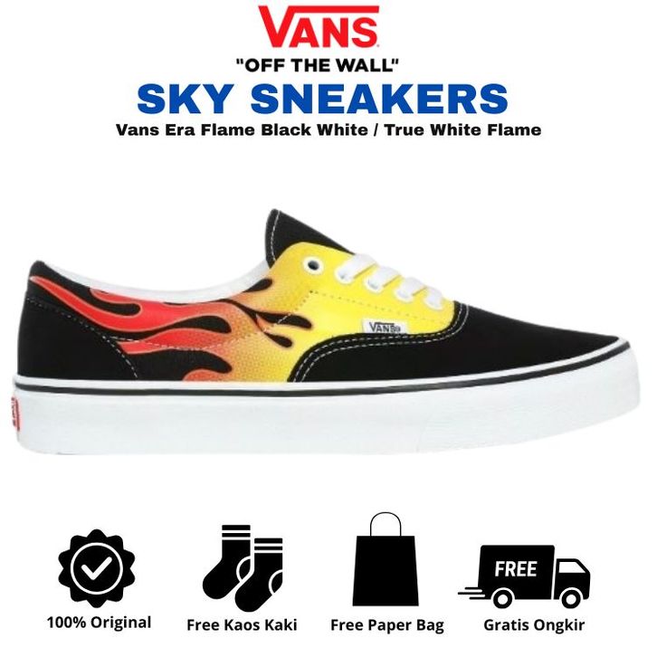 [Mall] SEPATU VANS ORIGINAL SNEAKER PRIA WANITA VANS ERA FLAME BLACK WHITE / TRUE WHITE FLAME SEPATU KASUAL AUTHENTIC