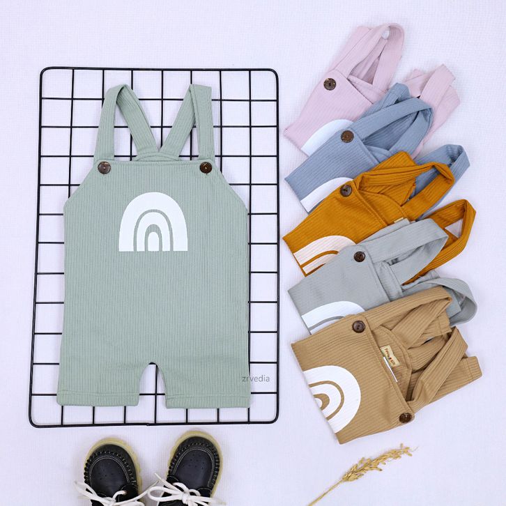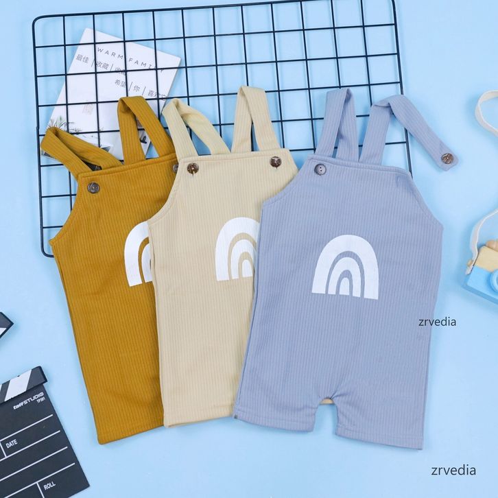 Baju Kodok Anak Perempuan KNIT Overall Rainbee Laki Perempuan uk Bayi 3 Tahun Baju Kodok Bahan Katun Rib Korea