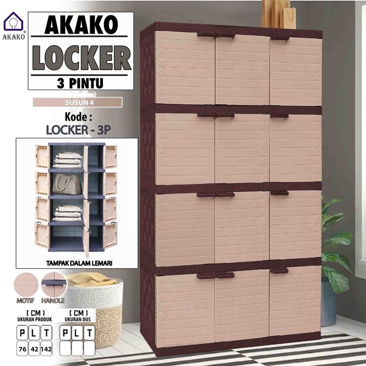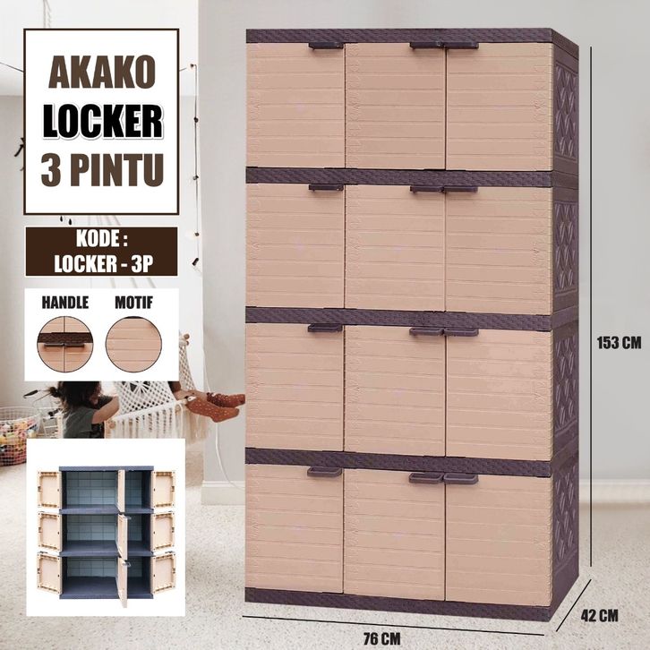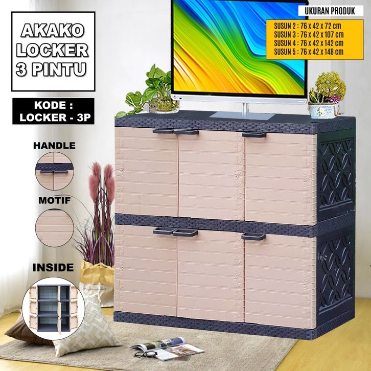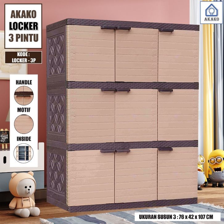 LEMARI - RAK BAJU - LEMARI PAKAIAN PLASTIK LOCKER 3 PINTU SUSUN 2 3 4 DAN 5 /KODE : LOCKER - 3P