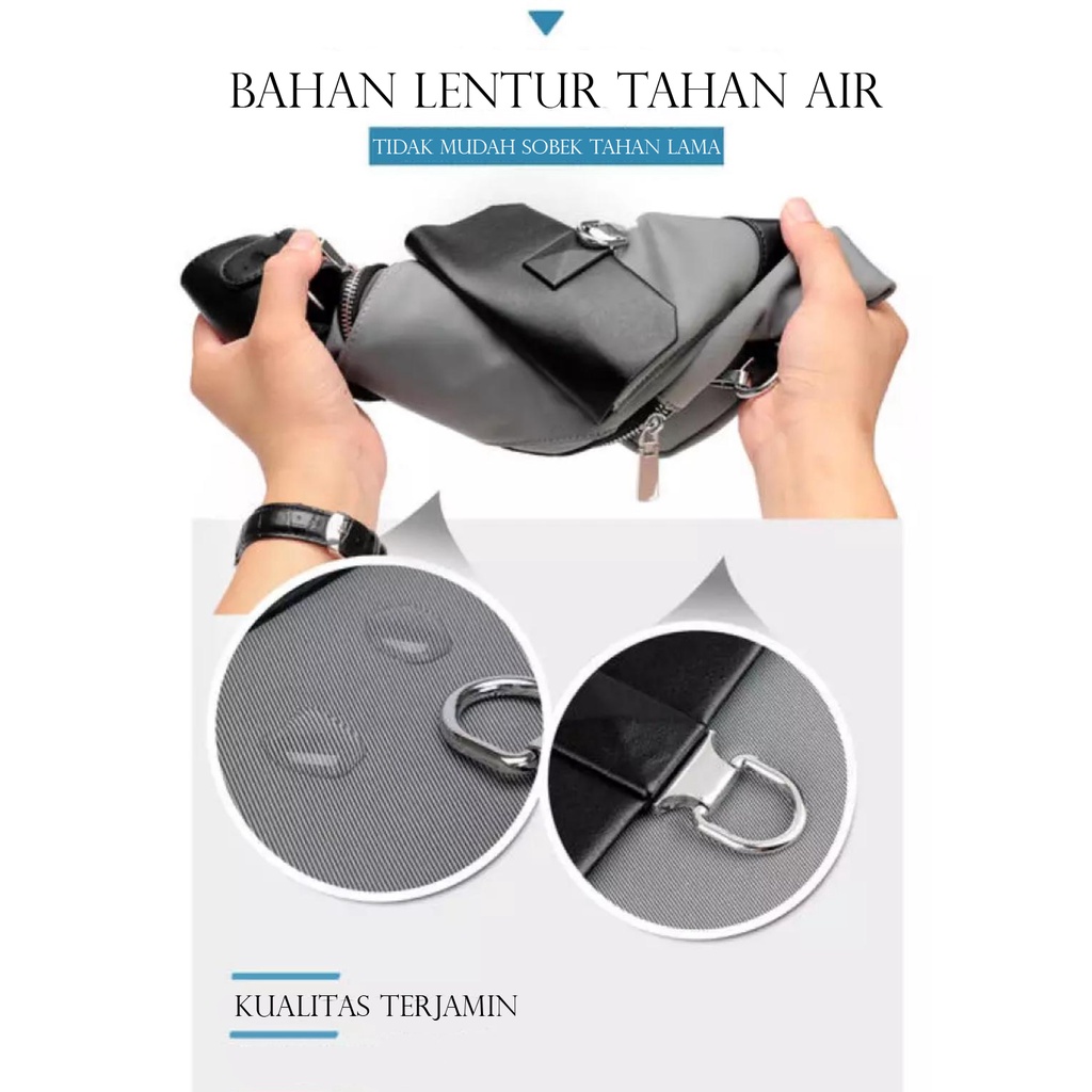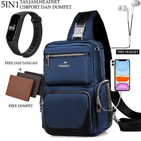 TANMESOO 5IN1 TAS BONUS JAM &DOMPET,USBPORT &HEADSET -TAS SELEMPANG PRIA SLING BAG USB PORT 11