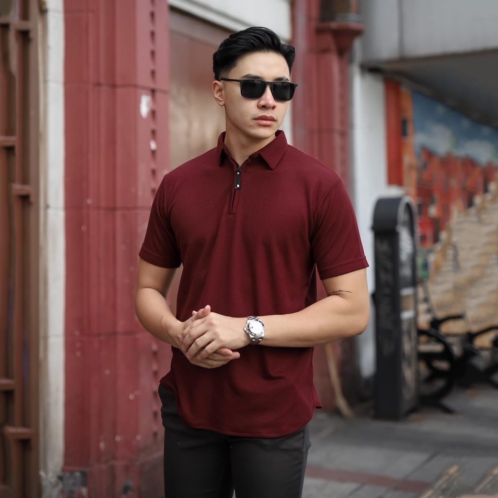 KAOS POLO SHIRT PRIA KAOS KERAH LENGAN PENDEK ORIGINAL ZIPPER SIZE M - XXL