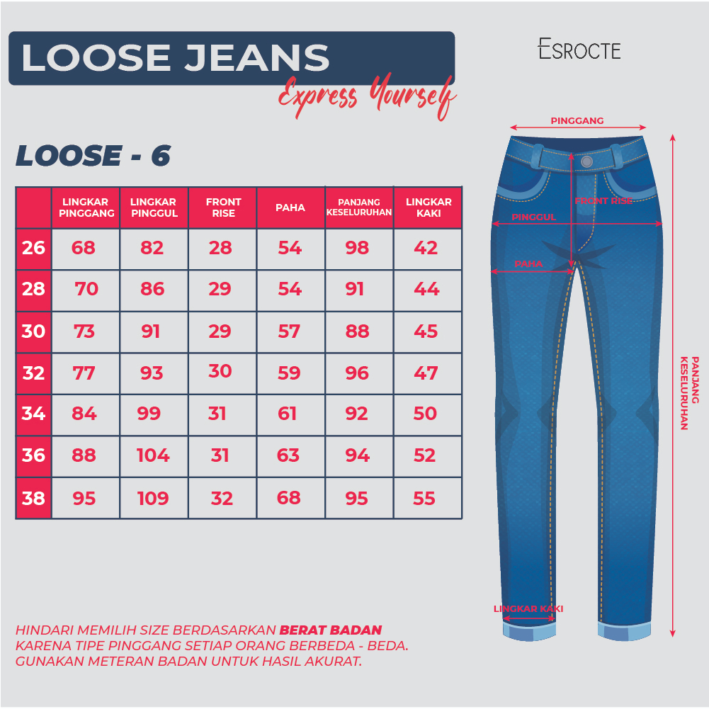 ESROCTE CELANA LOOSE BAGGY HIGH WAIST JEANS WANITA P11 - NAVY HITAM BIRU MUDA 26-38