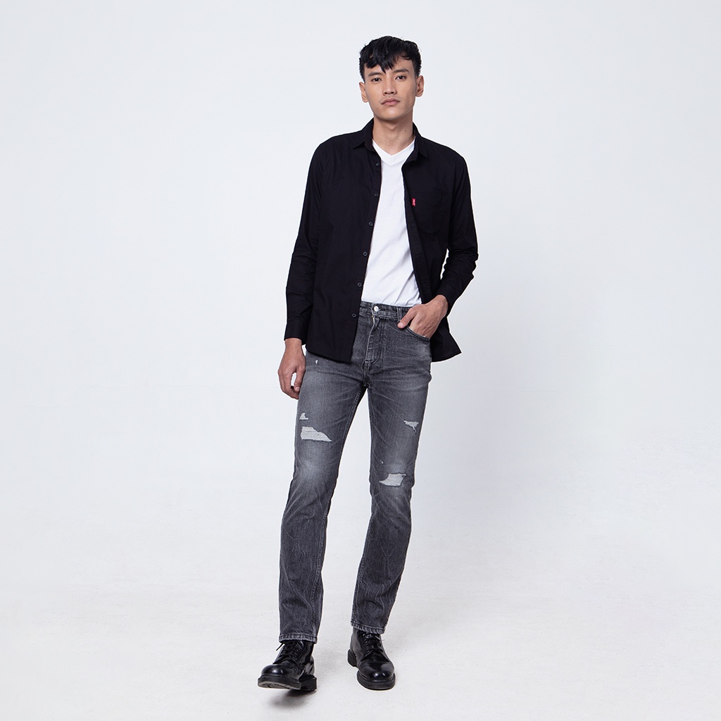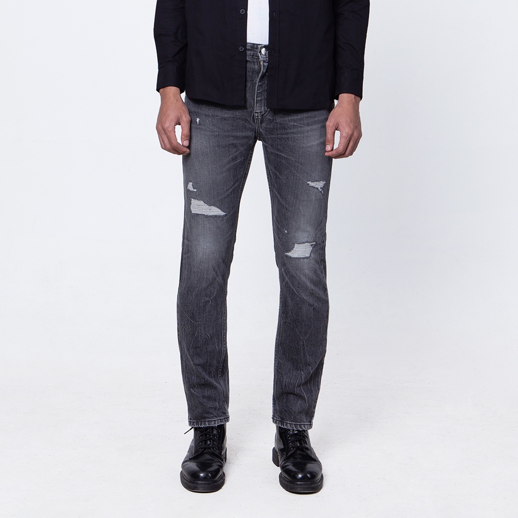 802 SLIM FIT HANDCRAFTED JEANS BLACK AGES DESTROY - CELANA PANJANG DENIM PRIA EDWIN JEANS