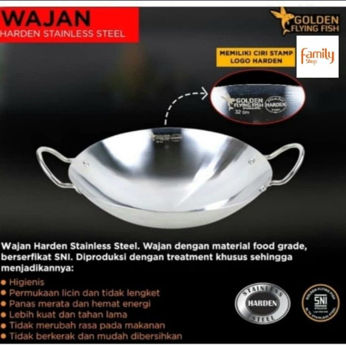 Kuali / Wajan Harden Stainless Steel 30cm go0ldden Flying Fish Anti Leng