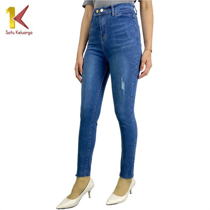 Celana Jeans Wanita Stretch Ripped Jeans High Waist / Celana Denim Highwaist Model Unfinished Cut 1K P612