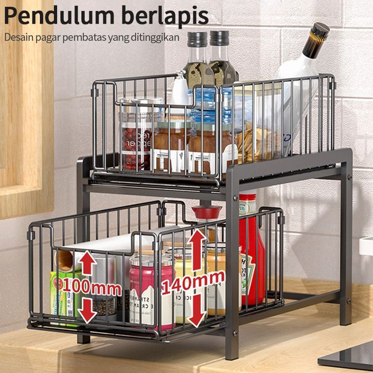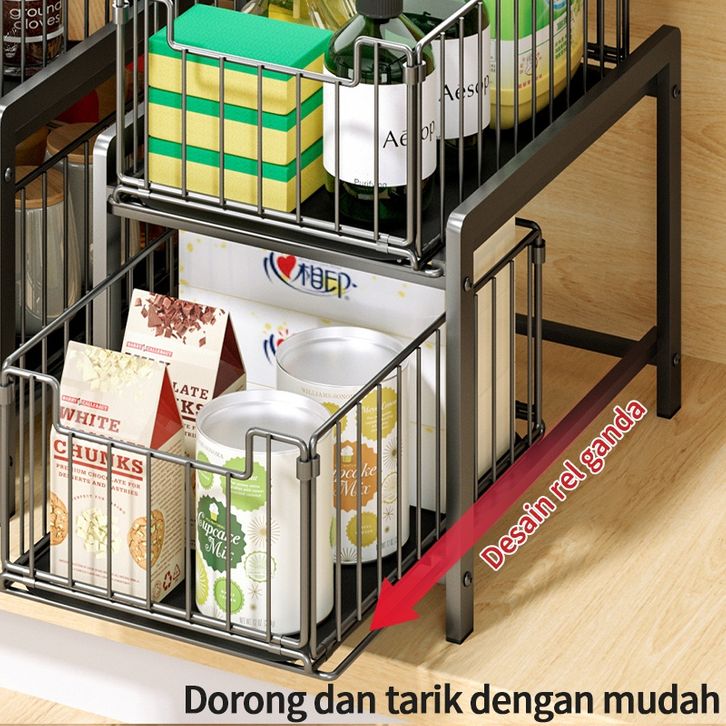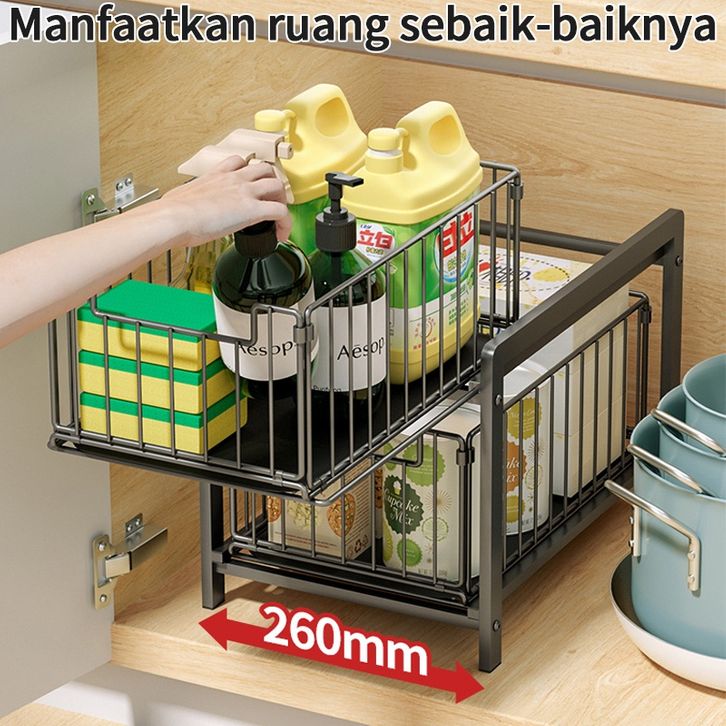 RAK DAPUR BAWAH WASTAFEL KITCHEN RACK RAK KABINET MULTIFUNGSI LEMARI DAPUR KERANJANG GESER LACI RAK TARIK RAK