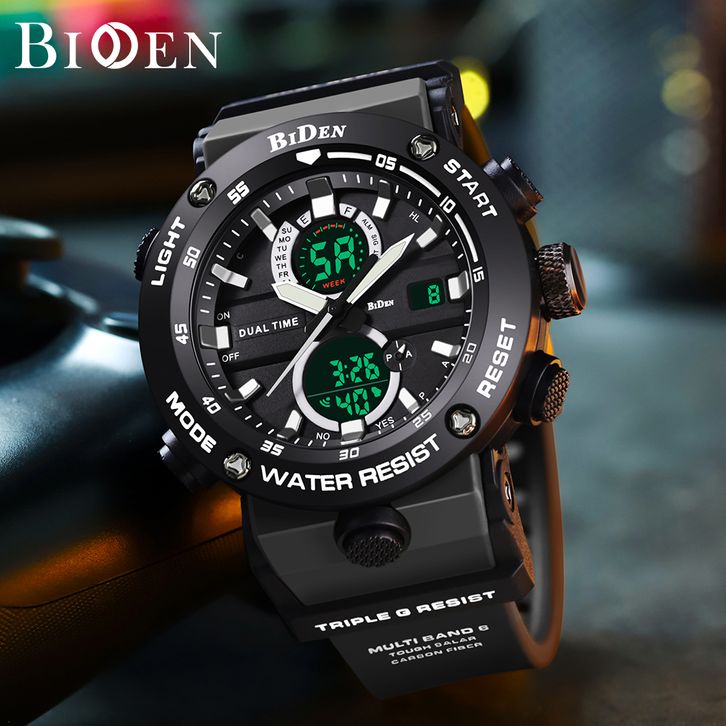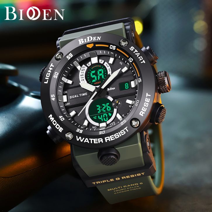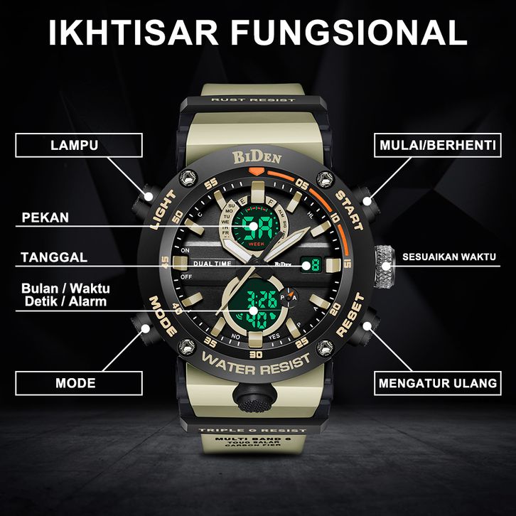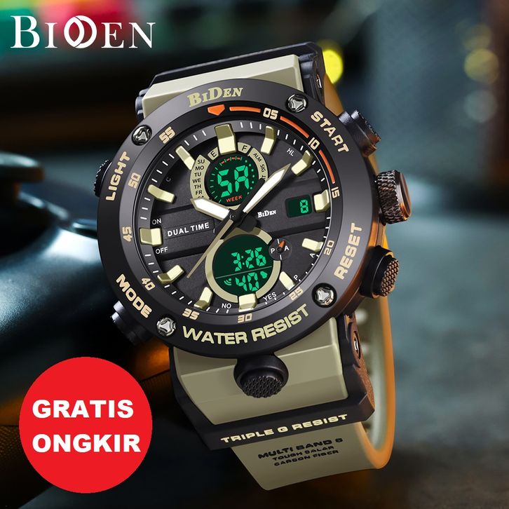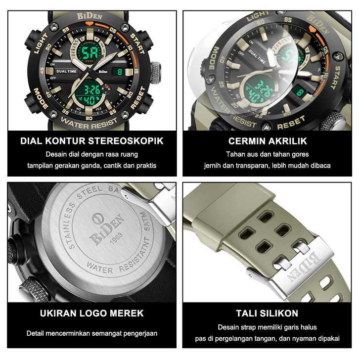 Jam Tangan Pria BIDEN Digital & Analog Original Olahraga Multifungsi Alarm Anti Air Tali Silikon