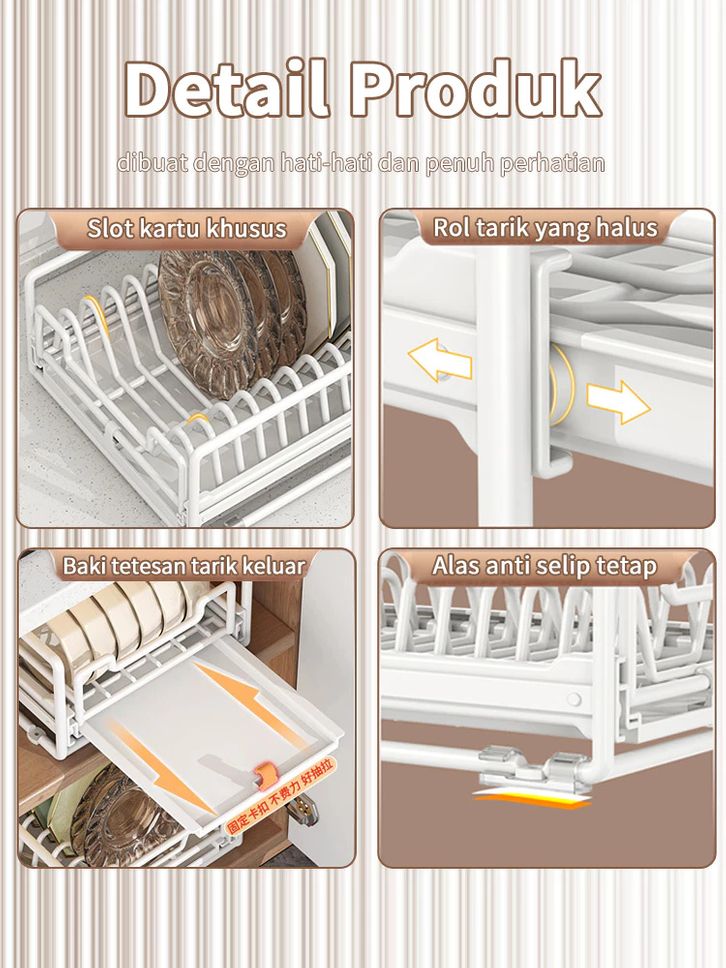 Rak Piring Pengering Piring Lemari Dapur Tarik Keluar Rak Piring Penyelenggara Rak Penyimpanan
