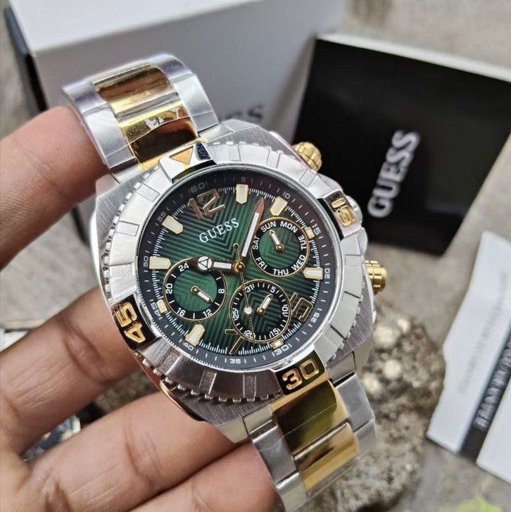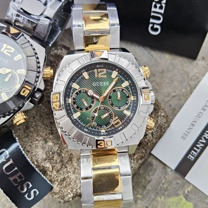 JAM TANGAN PRIA GUESS GW0800G1 SILVER COMBI DIAL GREEN STAINLESS STEEL FREE ONGKIR - FREE BOX