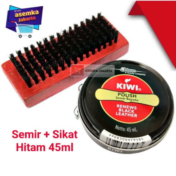 Semir Sepatu Kiwi shoe Polish Besar 45ml 17,5ml Lengkap + Sikat semir