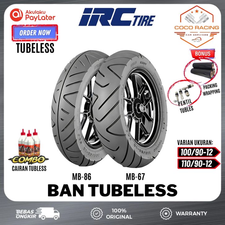 [Star] PAKET SEPASANG MURAH BAN TUBELESS IRC MB86 MB67 100/90-12 110/90-12 RING 12 MOTOR SCOPPY ASPIRA SPR40TL FDR CITY