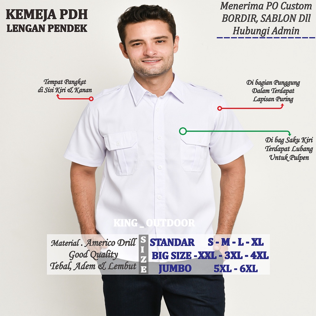 KEMEJA KERJA LENGAN PENDEK UKURAN JUMBO (5XL-6XL) WARNA PUTIH | SERAGAM PNS/ASN/PILOT | PAKAIAN PDH