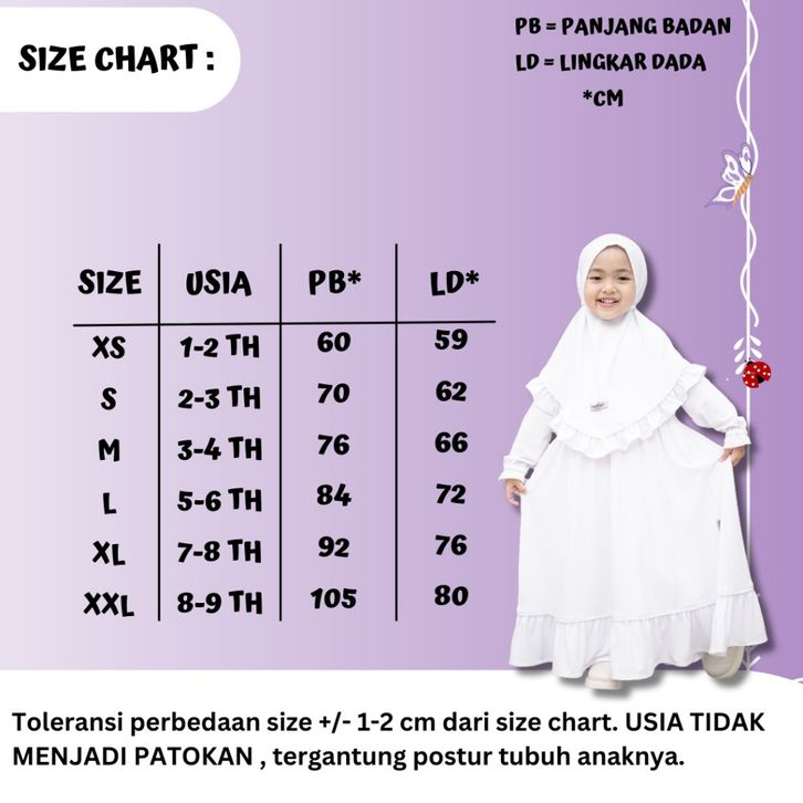 GAMIS ANAK PEREMPUAN GAMIS ANAK WARNA PUTIH USIA 5-13 TAHUN GAMIS PUTIH MANASIK HAJI ANAK GAMIS