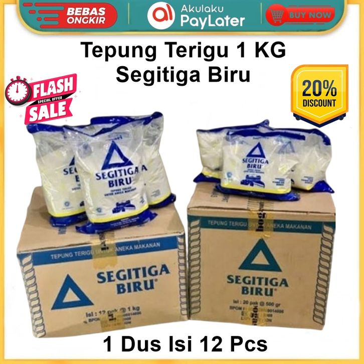 [GRATIS ONGKIR] Tepung Terigu Segitiga Biru 1 Kg Dus Isi 12 Pcs
