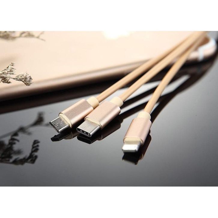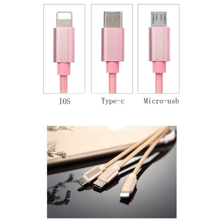 3 in 1 Charging Cable Fast Charge Micro USB Type-C iOS iPhone Android Lightning Braided Nylon Tinned Copper Data line