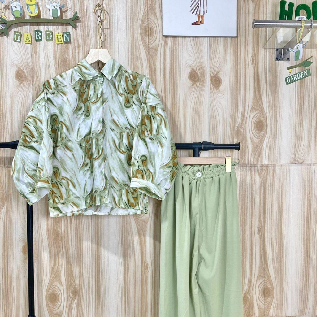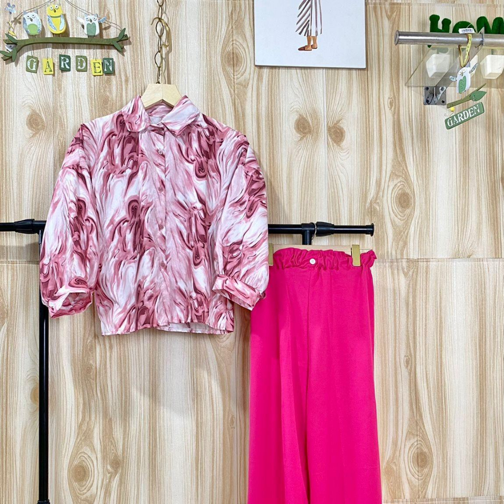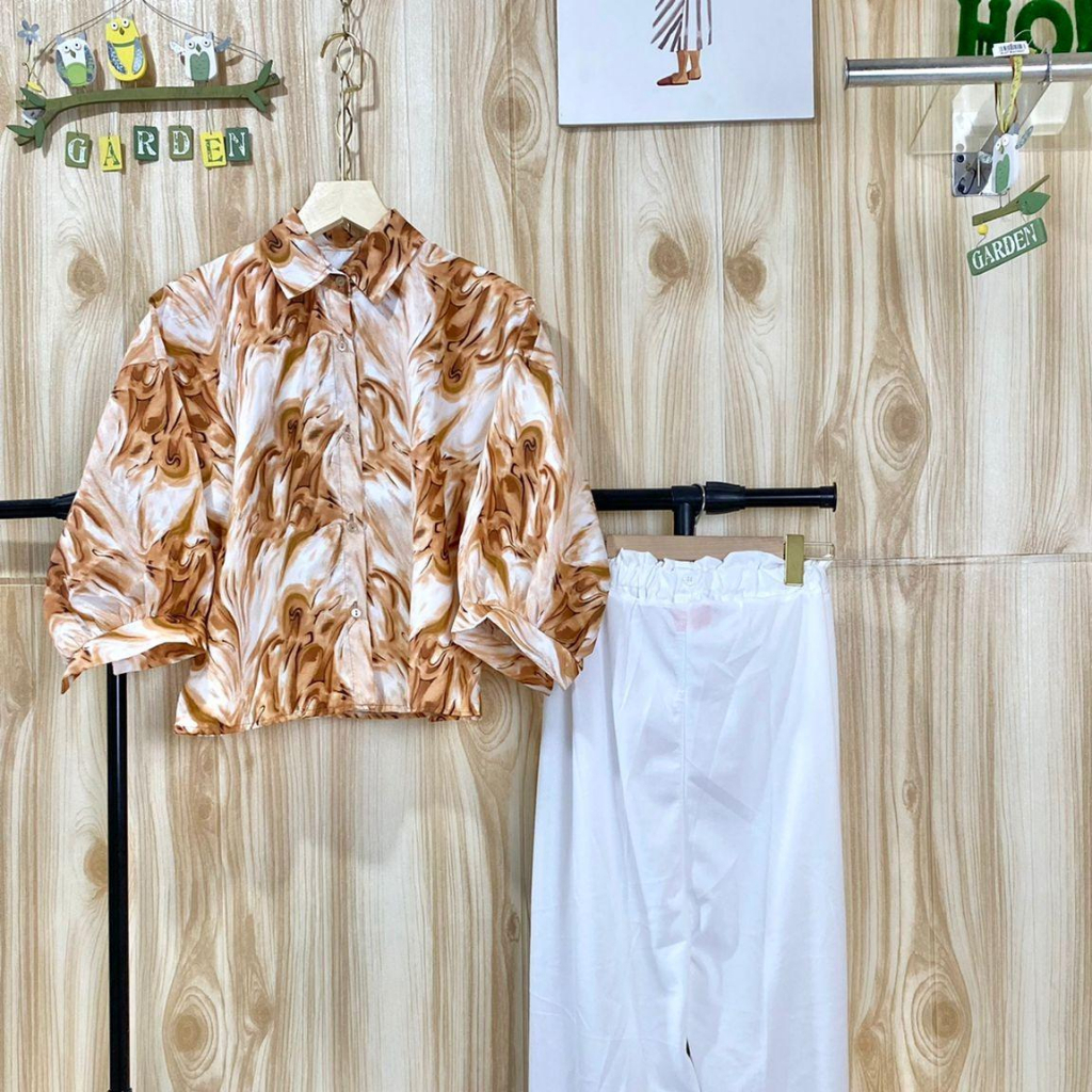 ONE SET CARLOTTA MARBLE PUFFY / SETELAN WANITA KEKINIAN ATASAN+CELANA
