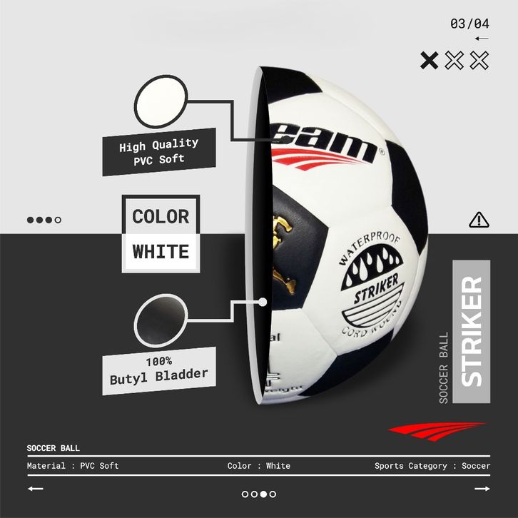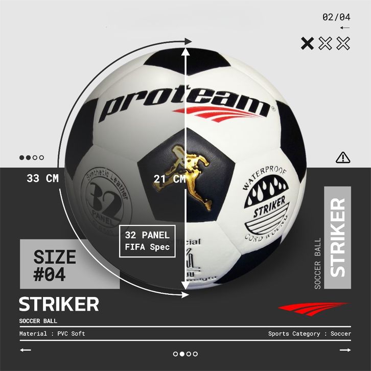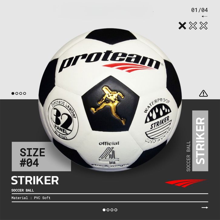 Bola Sepak Proteam Original Soccer Ball Classic Hitam Putih Striker Size 4