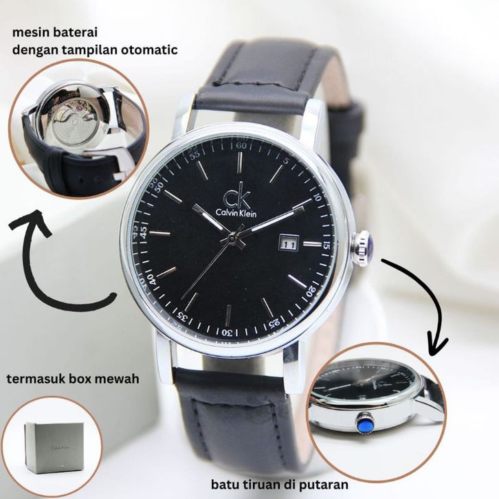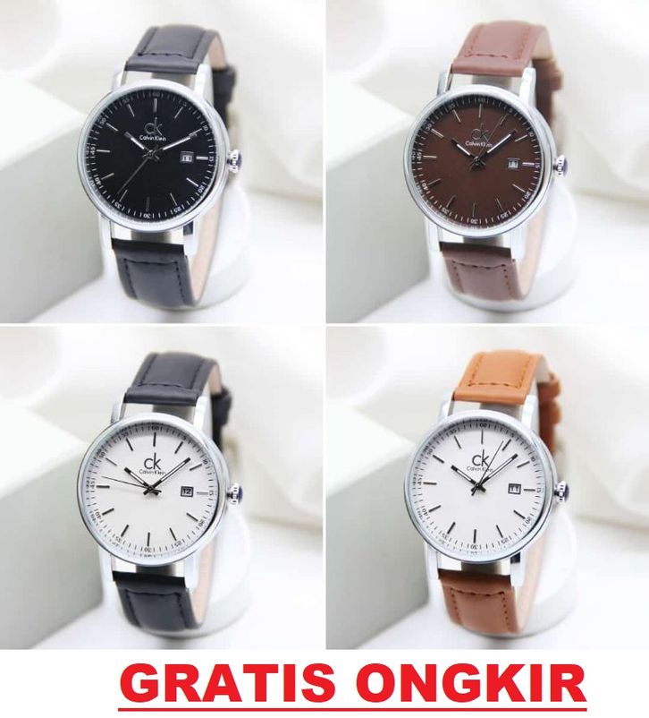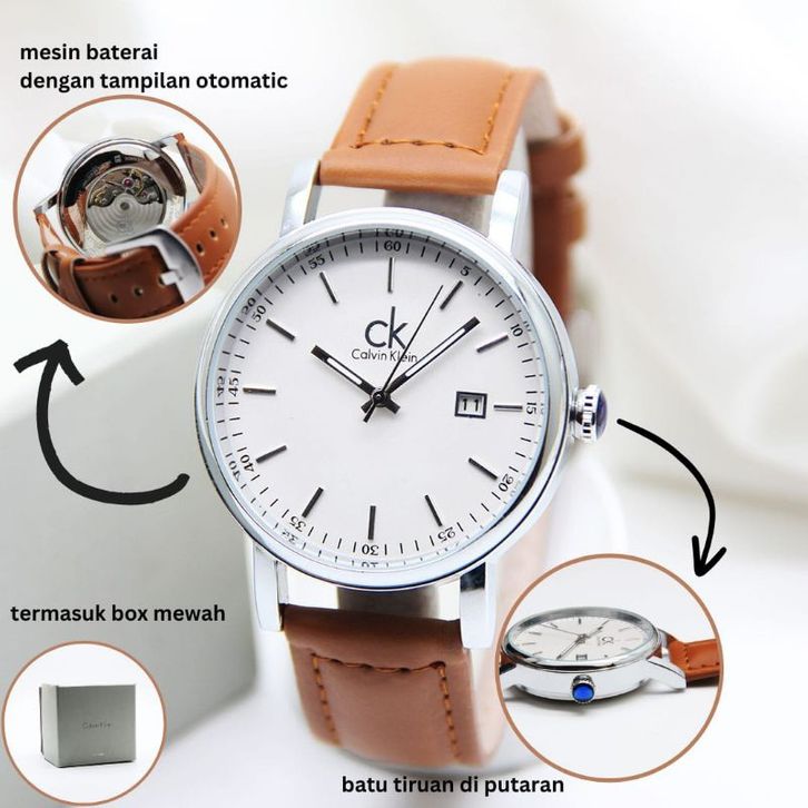 jam tangan casual pria wanita C.KK classic back case transparan AG-0722DR tali kulit tanggal aktif